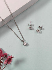 This elegant silver pendant set features a beautifully crafted pendant with matching earrings, designed to enhance your style for any occasion.
