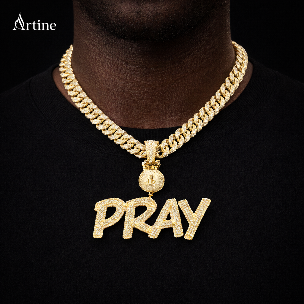 Custom Iced Name Pendant – Gold Script Letter Bling Charm