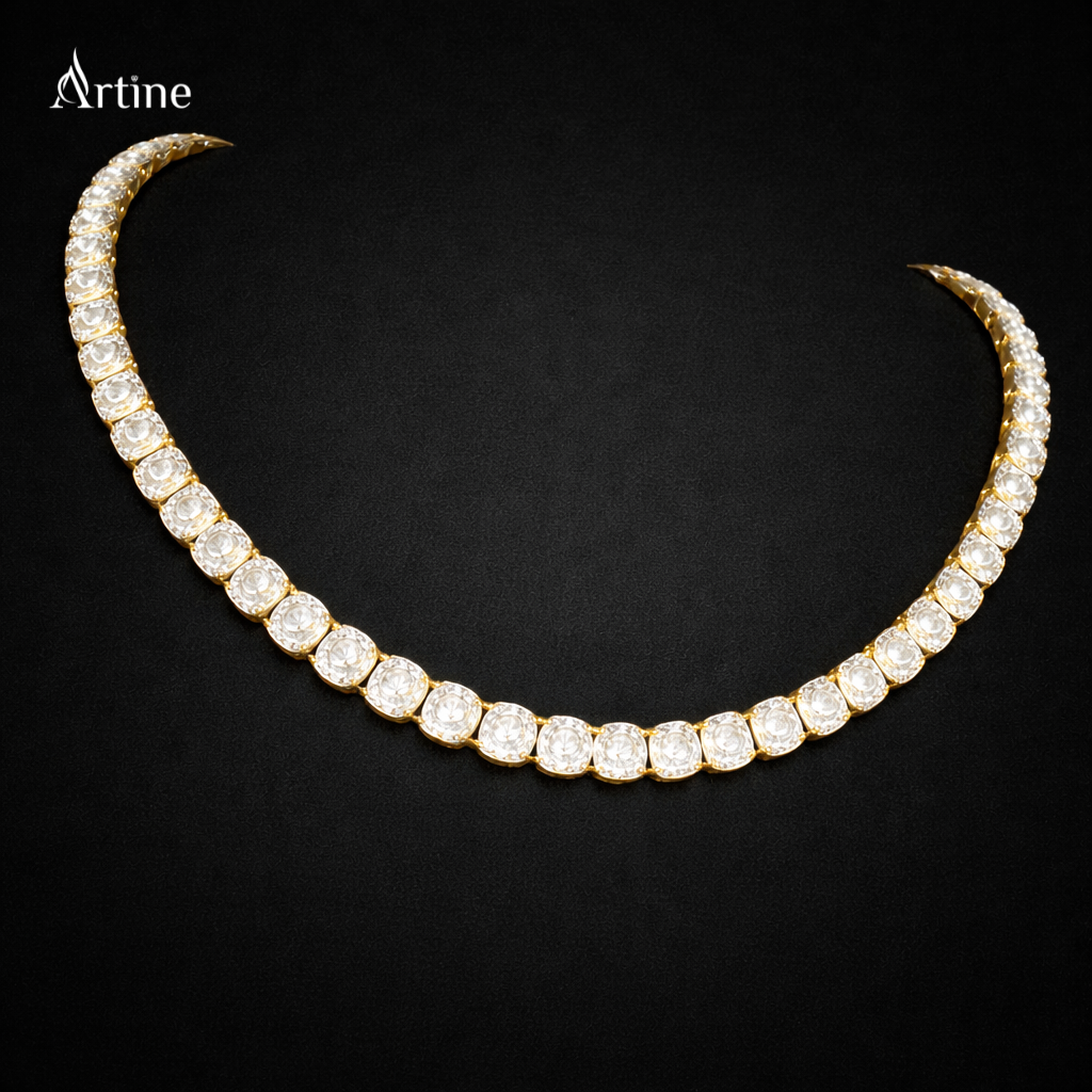 Golden Princess Cut Diamond Tennis Chain